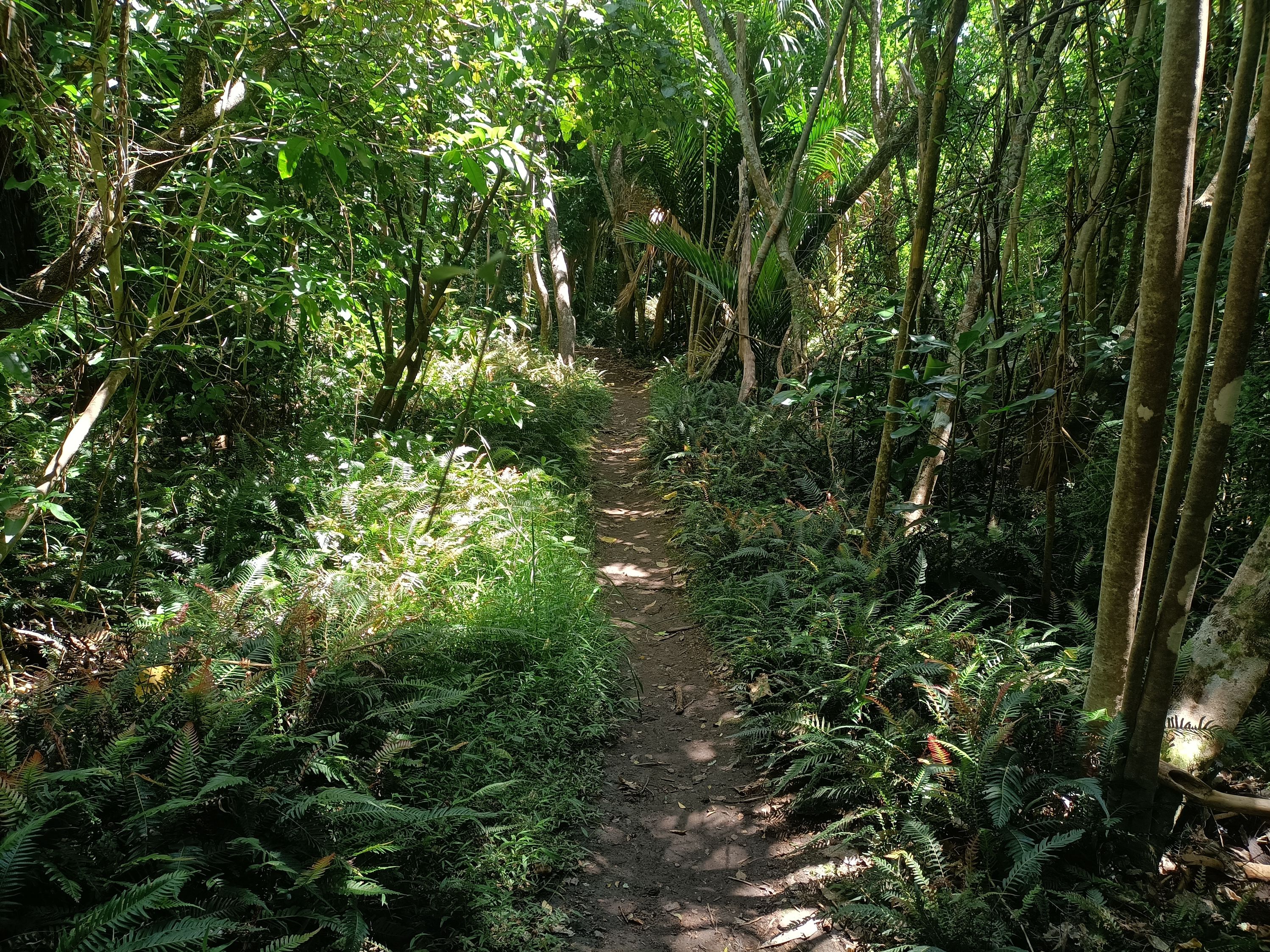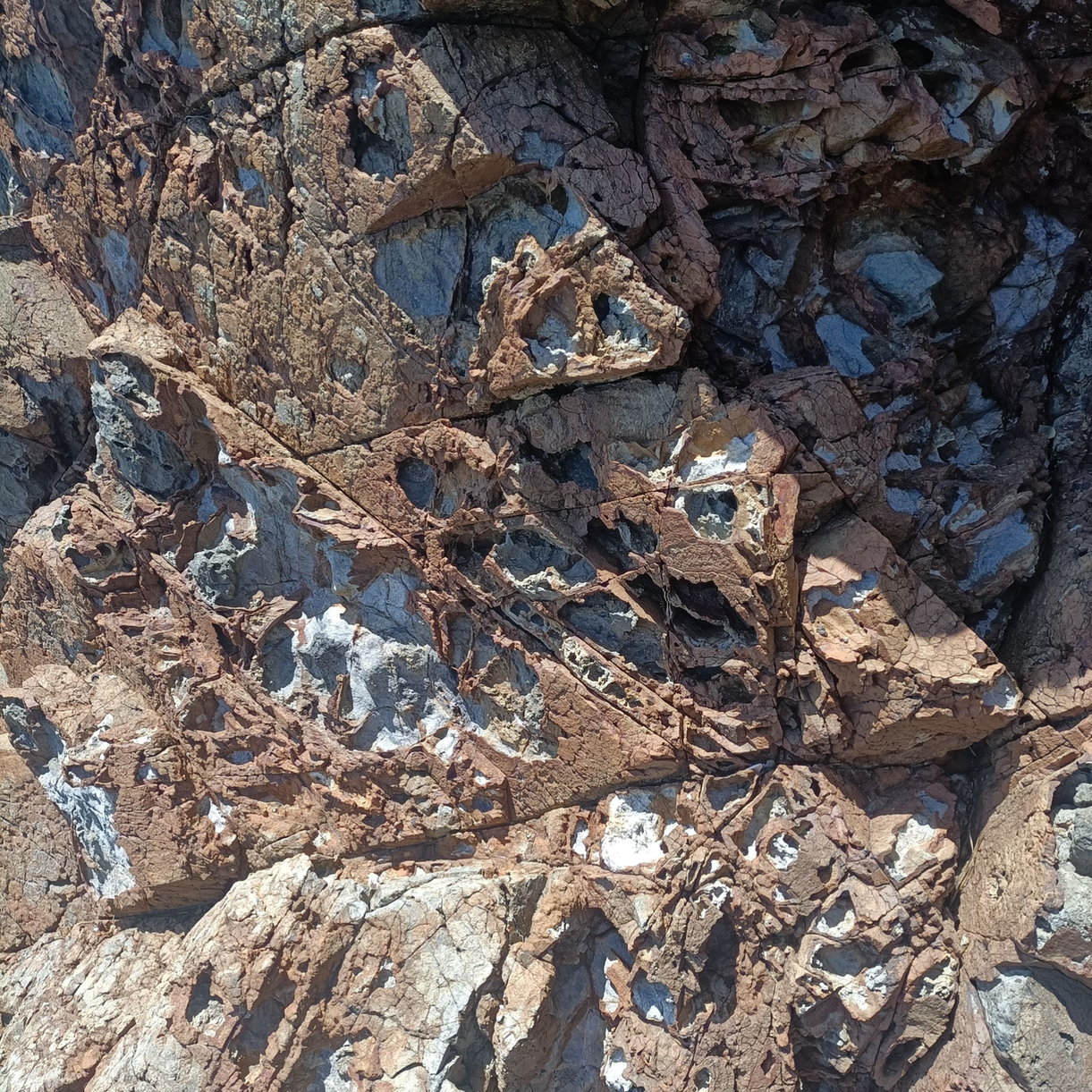 I’m going to Waiheke to learn too. All I know is that it’s said to be some mixture of rich people and hippies, and Lorde filmed a music video there. The boat arrives at Matiatia and I take a bus for a couple of minutes to get to Oneroa. I don't have a plan and there’s not much to see so I go down to the beach. I look up the history of the area and learn that the original name is Te Motu-Arai-Roa. I have the Wellington urge to walk for a few hours and although the island boasts 100km of tracks there are some long-term track closures that limit my options. I figure I’ll head towards Ostend and see how far I get. Trying to follow Te Ara Huna takes me on a climb over some incredibly intricate layered and geometric rocks and around to a smaller beach. I forgot to pack my togs but the water looks beautiful.